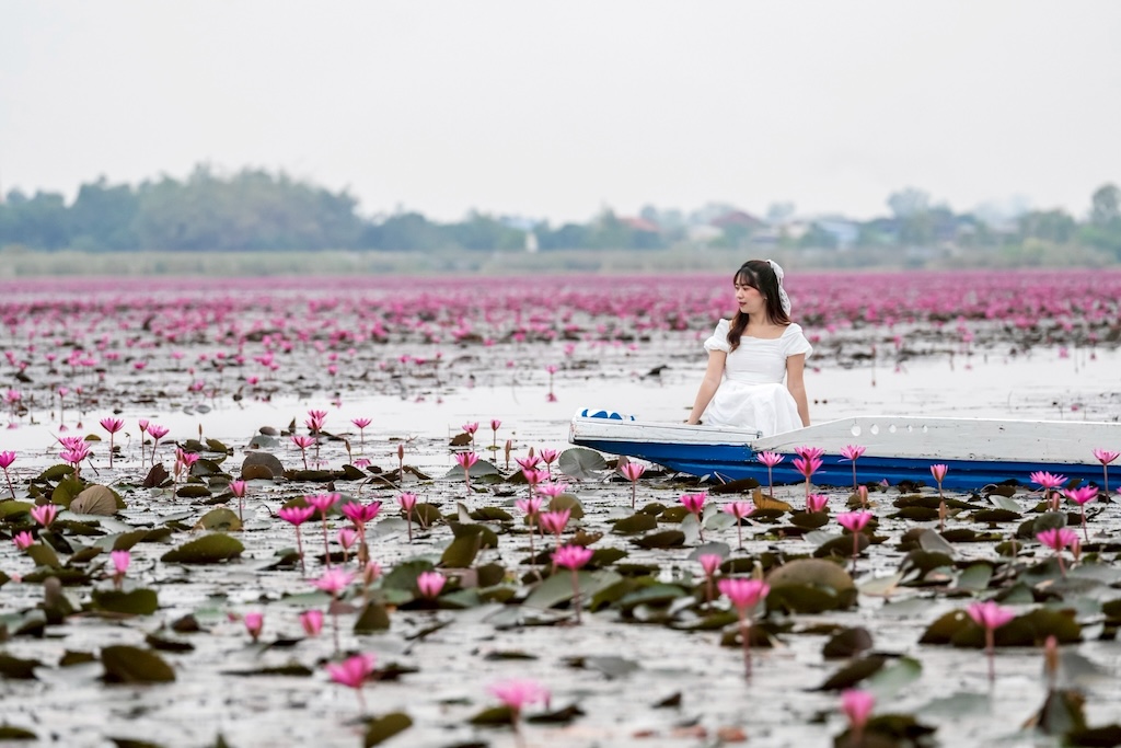การล่องเรือชมทะเลบัวแดงคือไฮไลต์สำคัญที่สุด 🚣♂️🌸