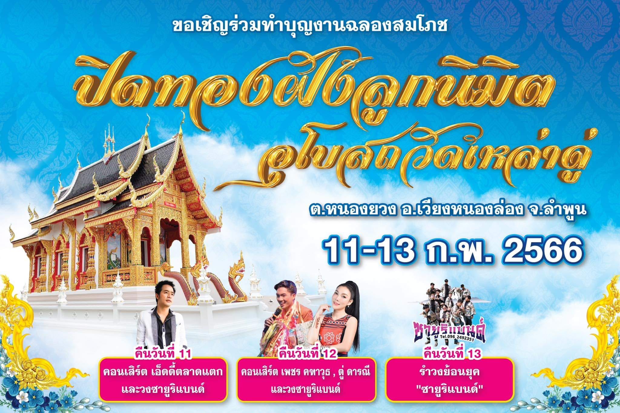 ขอเชิญร่วมทำบุญฉลองสมโภช ปิดทองฝังลูกนิมิต อุโบสถวัดเหล่าดู่ ต.หนองยวง อ.เวียงหนองล่อง จ.ลำพูน
