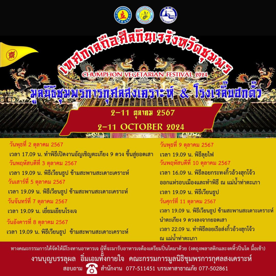 📍 สถานที่จัดงาน: มูลนิธิชุมพรการกุศลสงเคราะห์และโรงเจลิ๊บฮกตั้ว จังหวัดชุมพร