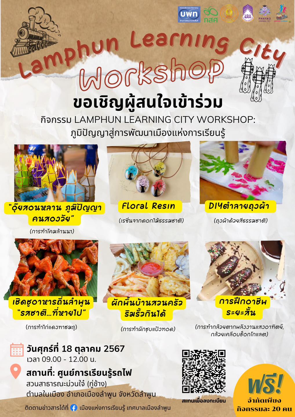 #LamphunLearningCity #ลำพูนเมืองแห่งการเรียนรู้ #เทศบาลเมืองลำพูน #ภูมิปัญญาท้องถิ่น #การพัฒนาอย่างยั่งยืน #งานเวิร์กช็อปฟรี #การศึกษาเพื่อความเสมอภาค #ลำพูน