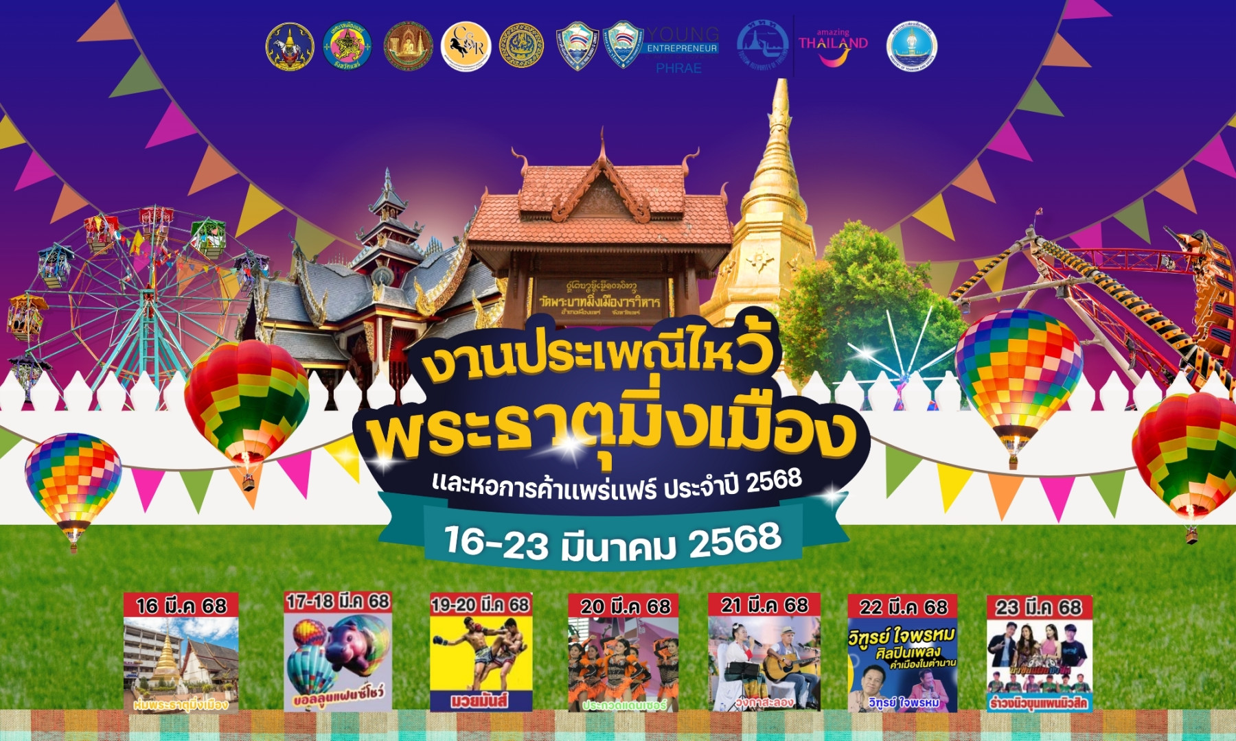 🌟 ชวนเที่ยวงานบุญและงานแฟร์สุดคึกคักในจังหวัดแพร่! งานประเพณีไหว้พระธาตุมิ่งเมือง และหอการค้าแพร่แฟร์ประจำปี 2568 กลับมาอีกครั้ง กับกิจกรรมสุดพิเศษทั้งในวัดและรอบวัดพระบาทมิ่งเมือง จัดเต็มความสนุก ความบันเทิง และสินค้าสุดพิเศษจากร้านค้าดังทั่วจังหวัดแพร่!