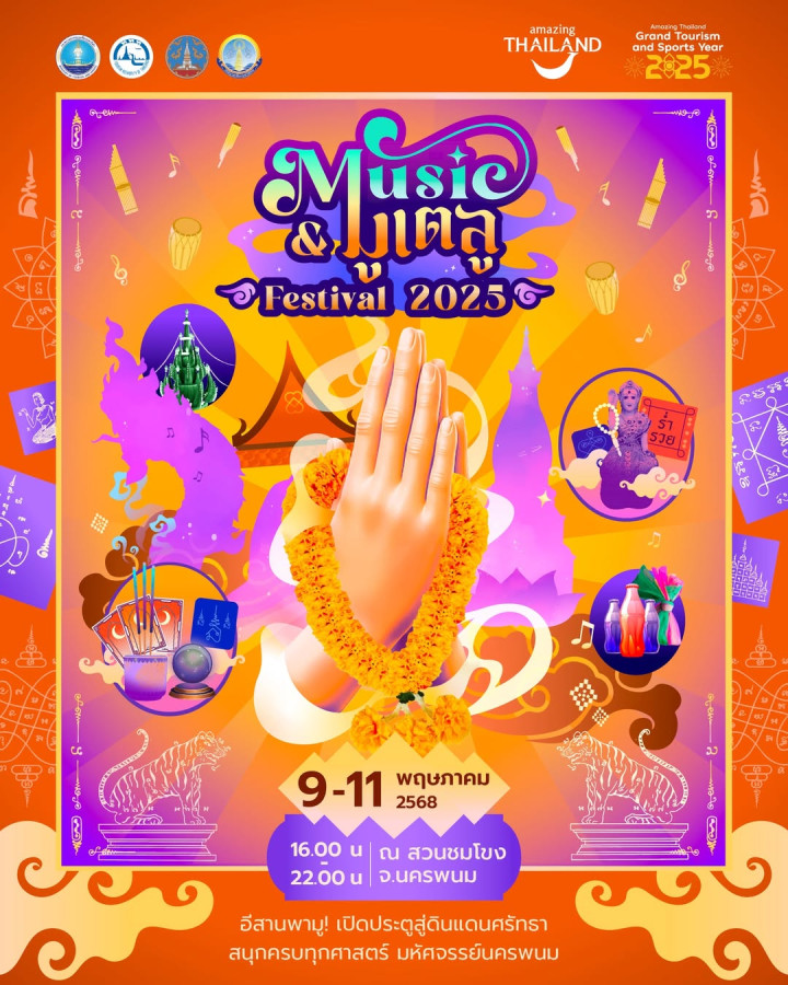 เตรียมตัวให้พร้อม! สายมูห้ามพลาดกับงานสุดยิ่งใหญ่แห่งปี “Music & MuTelu Festival 2025” 🎶🔮 ที่จะพาทุกคนไปสัมผัสมนต์เสน่ห์แห่งความศรัทธา พร้อมสนุกสุดมันส์กับดนตรีกลางลานริมโขง บรรยากาศสุดชิลแบบไม่เหมือนใคร ที่ จังหวัดนครพนม 🧙♀️✨