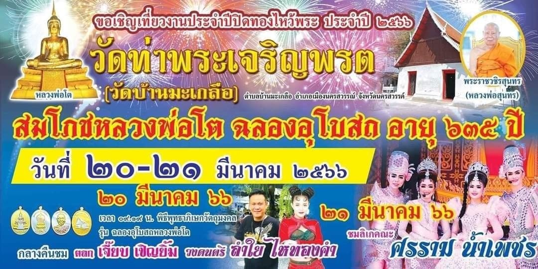 ขอเชิญเที่ยวงานประจำปีปิดทองไหว้พระ ประจำปี 2566 วัดท่าพระเจริญพรต (วัดบ้านมะเกลือ)
