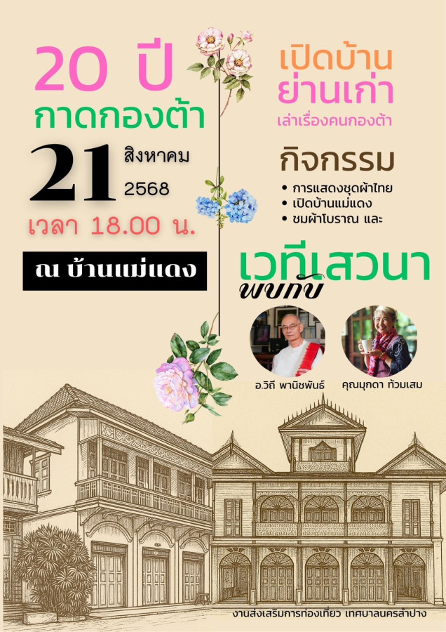 ✨ อย่าพลาดโอกาสร่วมงานครบรอบ 20 ปี กาดกองต้า ที่จะพาคุณย้อนรำลึกเรื่องราวเมืองเก่าลำปางในบรรยากาศสุดประทับใจ