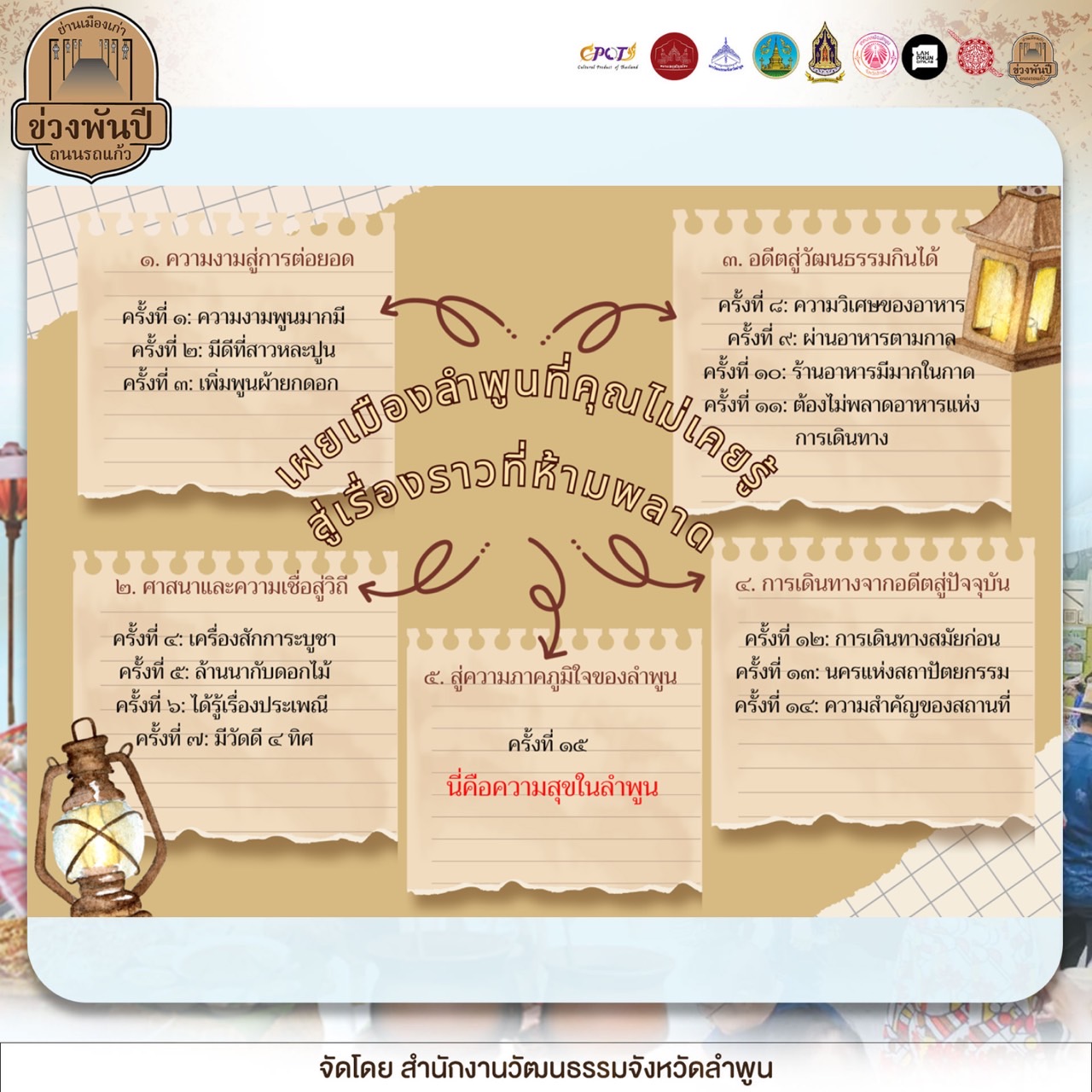 ที่นี่คุณจะได้พบกับมนต์เสน่ห์ความคลาสสิก ย้อนยุคกลับไปสู่ยุคทองของลำพูน ผ่าน 15 ธีม 15 สัปดาห์ ที่หมุนเวียนมาให้คุณสัมผัสบรรยากาศไม่ซ้ำกันเลย 🍃