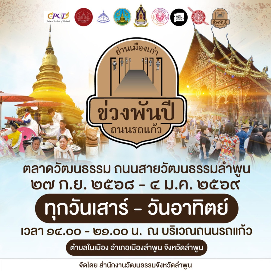 หากคุณกำลังมองหาที่เที่ยวแนววัฒนธรรมและย่านเมืองเก่าที่เต็มไปด้วยเสน่ห์โบราณ ✨ “ย่านเมืองเก่า ข่วงพันปี ถนนรถแก้ว” จังหวัดลำพูน คือหนึ่งในเทศกาลที่ไม่ควรพลาด! งานนี้จัดขึ้นอย่างยิ่งใหญ่และยาวนาน ตั้งแต่ 27 กันยายน 2568 – 4 มกราคม 2569 ทุกวันเสาร์–อาทิตย์ เวลา 14.00–21.00 น. ณ ถนนรถแก้ว ตำบลในเมือง อำเภอเมืองลำพูน