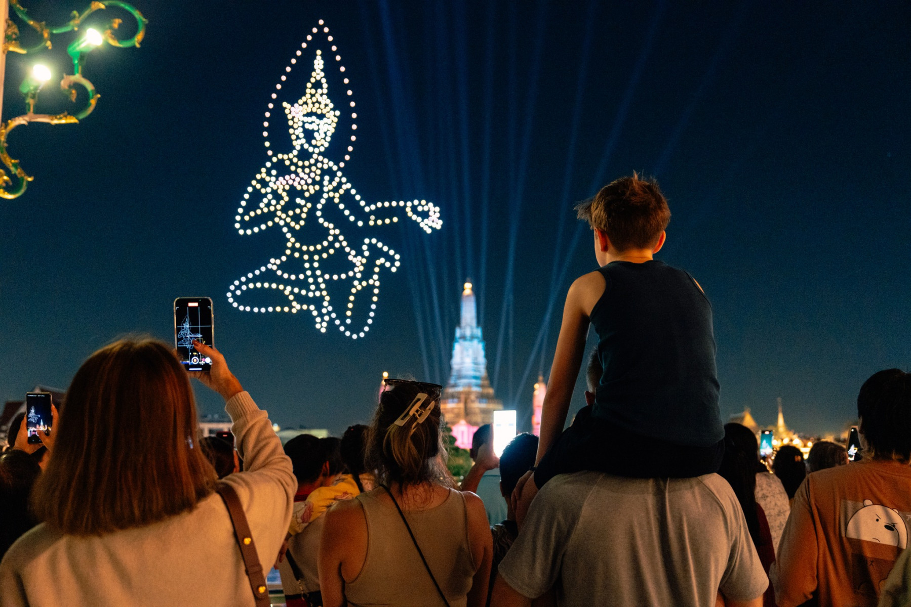 ✨ Light Projection Show — การแสดงแสงสีบนแลนด์มาร์กสำคัญ เช่น วัดอรุณฯ, สะพานพระราม 8 และโรงแรมริมแม่น้ำ