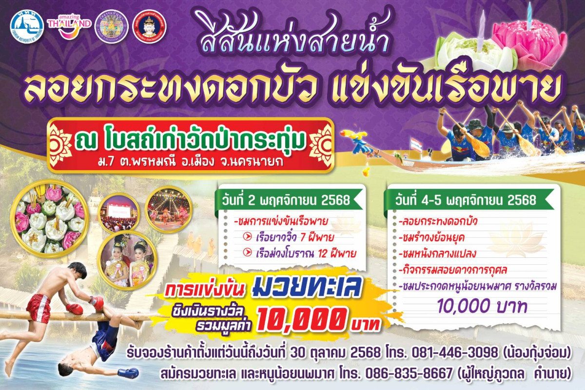 “สีสันแห่งสายน้ำประเพณี ลอยกระทงดอกบัว ปี 2568” ณ วัดป่ากระทุ่ม 200 ปี จังหวัดนครนายก
