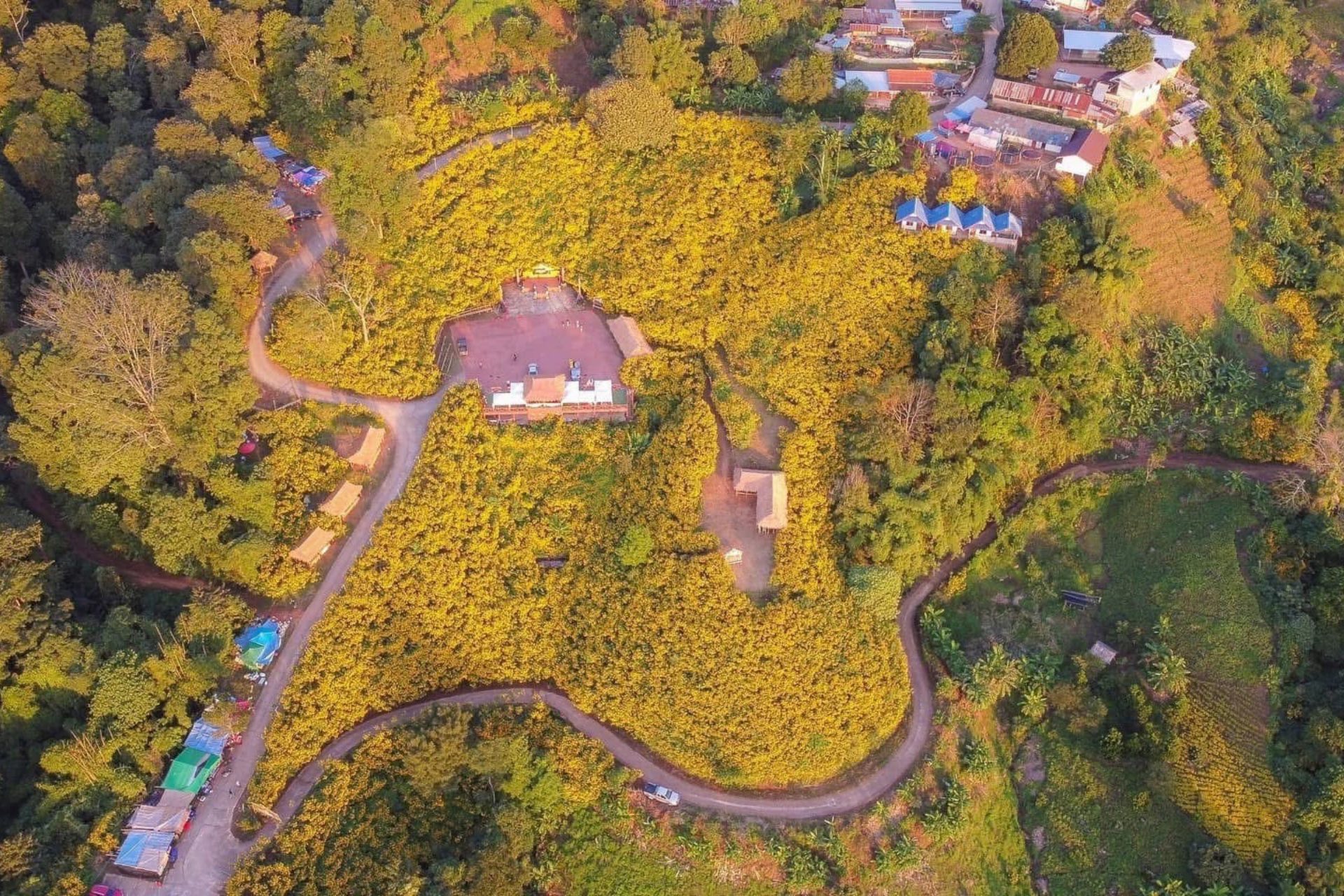 ชมความงามของทุ่งดอกบัวตองบานเต็มดอย ที่บ้านหัวแม่คำ — จุดชมวิวที่มองเห็นขุนเขาสลับซับซ้อนและทะเลหมอกยามเช้า
