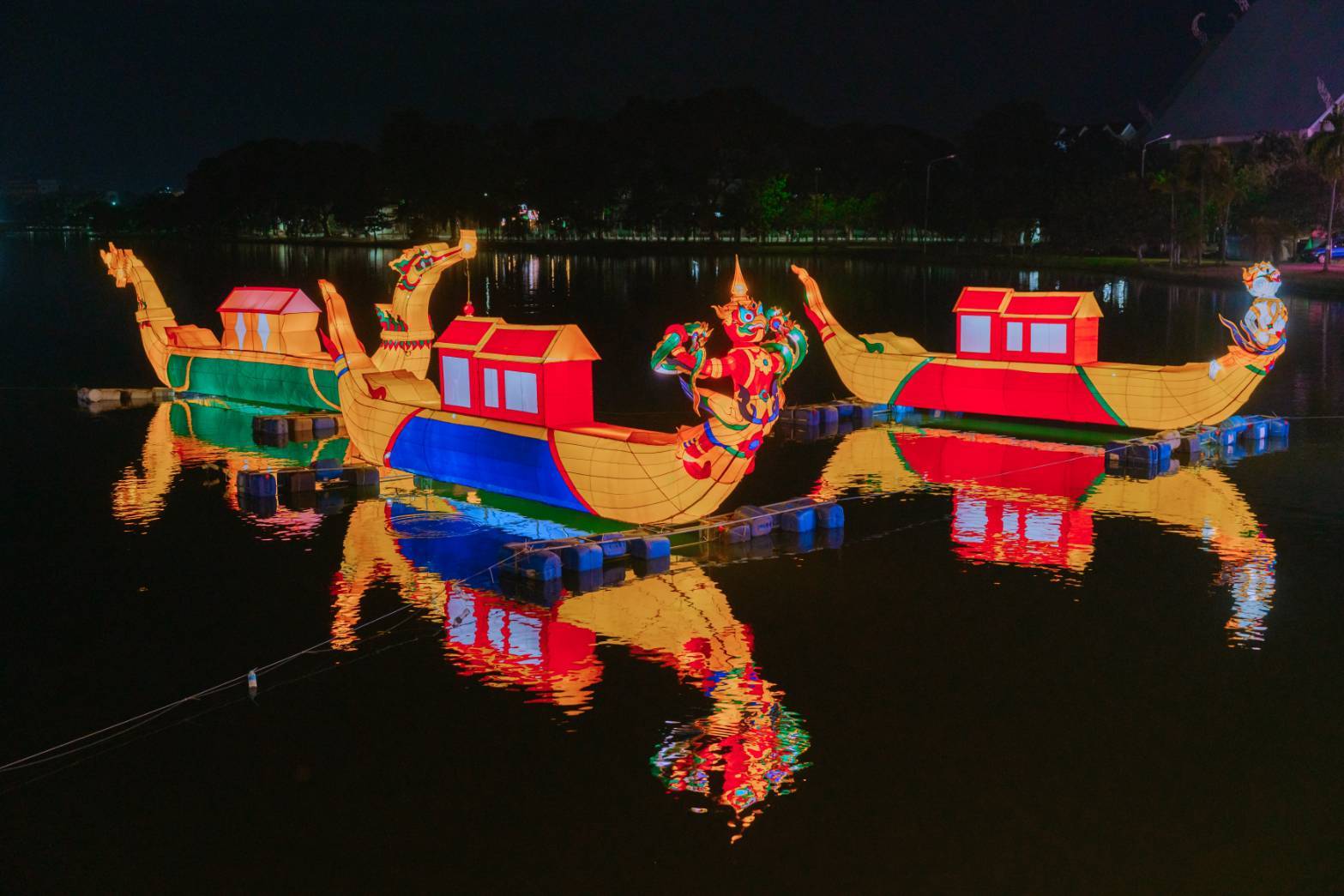 หุ่นโคมไฟขนาดใหญ่ถูกจัดวางอย่างสวยงามสื่อถึงการอยู่ร่วมกันของผู้คนหลากหลายวัฒนธรรมในเมืองนครสวรรค์ สีสันที่เปล่งประกายสะท้อนถึงความหวังและความปรารถนาดีของชุมชน