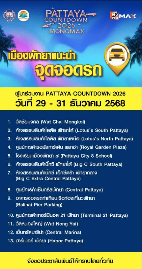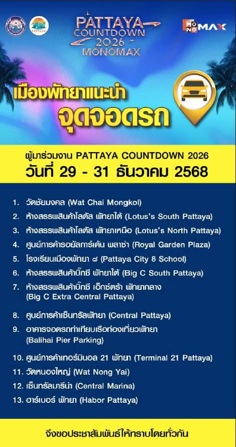 รวมถึง พิธีเปิดงาน Pattaya Countdown 2026 ที่ยิ่งใหญ่สะกดสายตาทุกคน