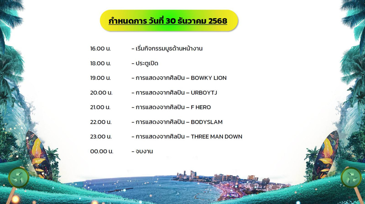 เมื่อปลายปีใกล้เข้ามา เมืองพัทยาก็ดูจะเปลี่ยนเป็นฉากเฉลิมฉลองที่มีชีวิตที่สุดแห่งหนึ่งของประเทศไทย 🌊✨