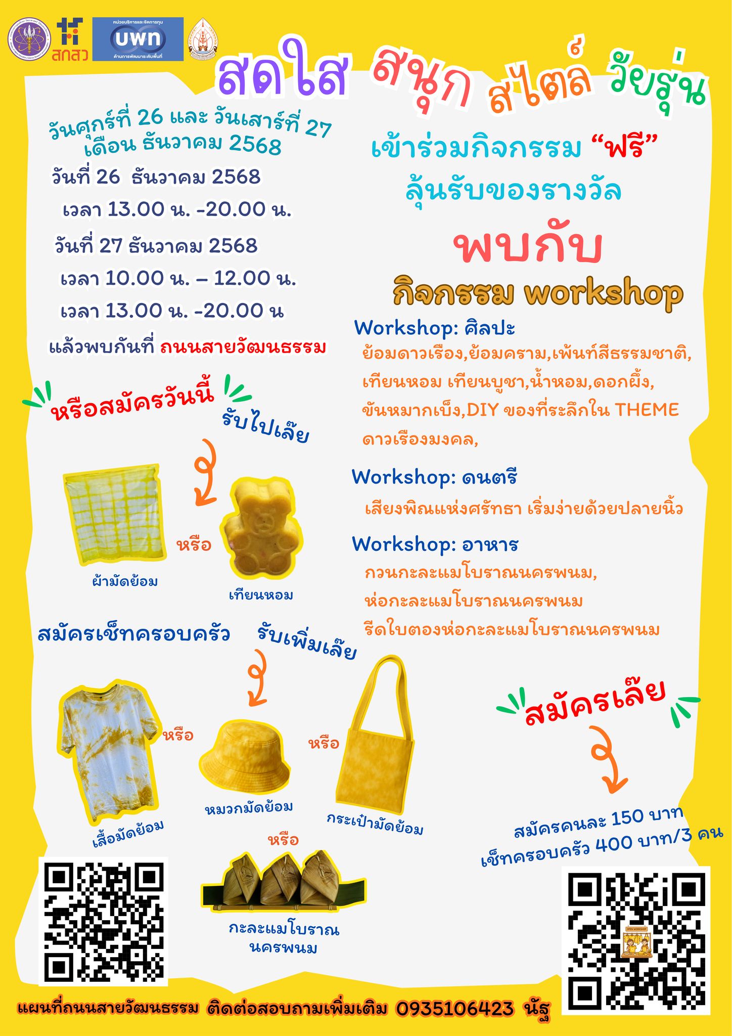 ลงทะเบียนเวิร์กชอปล่วงหน้าเพื่อกันที่ เพราะบางกิจกรรมเต็มเร็ว 🎨