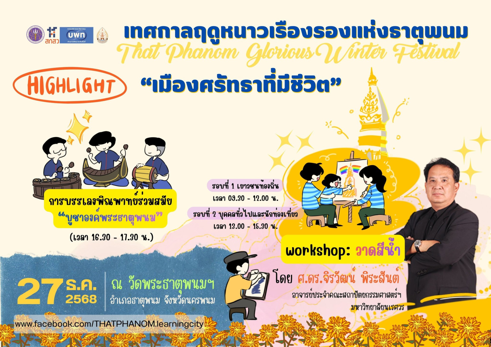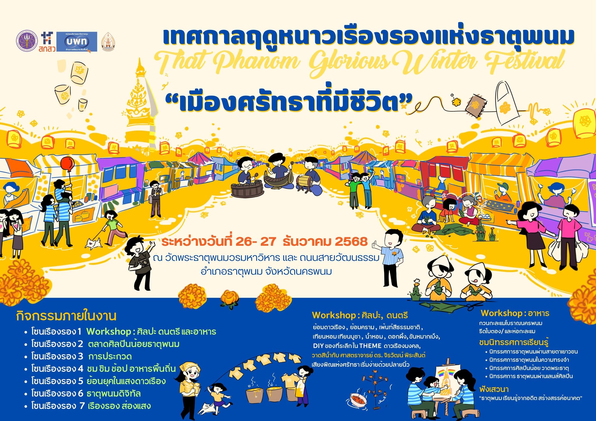 เทศกาลฤดูหนาวเรืองรองแห่งธาตุพนมคือคำเชิญชวนให้เรากลับมาสัมผัสความศรัทธา ศิลปะ และความอบอุ่นของผู้คนปลายปีนี้ 🌾💛