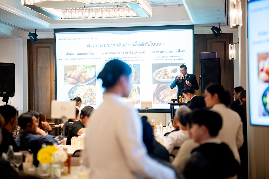 งานสัมมนา “Highball Seminar” โดย Suntory Global Spirits เปิดเวทีให้ผู้ชมได้ดื่มด่ำศิลปะแห่ง Highball ผ่านประสบการณ์ของ Taichi Sasaki ผู้ครองตำแหน่ง Master of Whisky คนแรกของญี่ปุ่น ผู้ถ่ายทอดปรัชญาความประณีตที่สั่งสมมากว่า 100 ปีของ The House of Suntory ให้โลกรับรู้ถึงความงดงามของวิสกี้ญี่ปุ่นอย่างแท้จริง