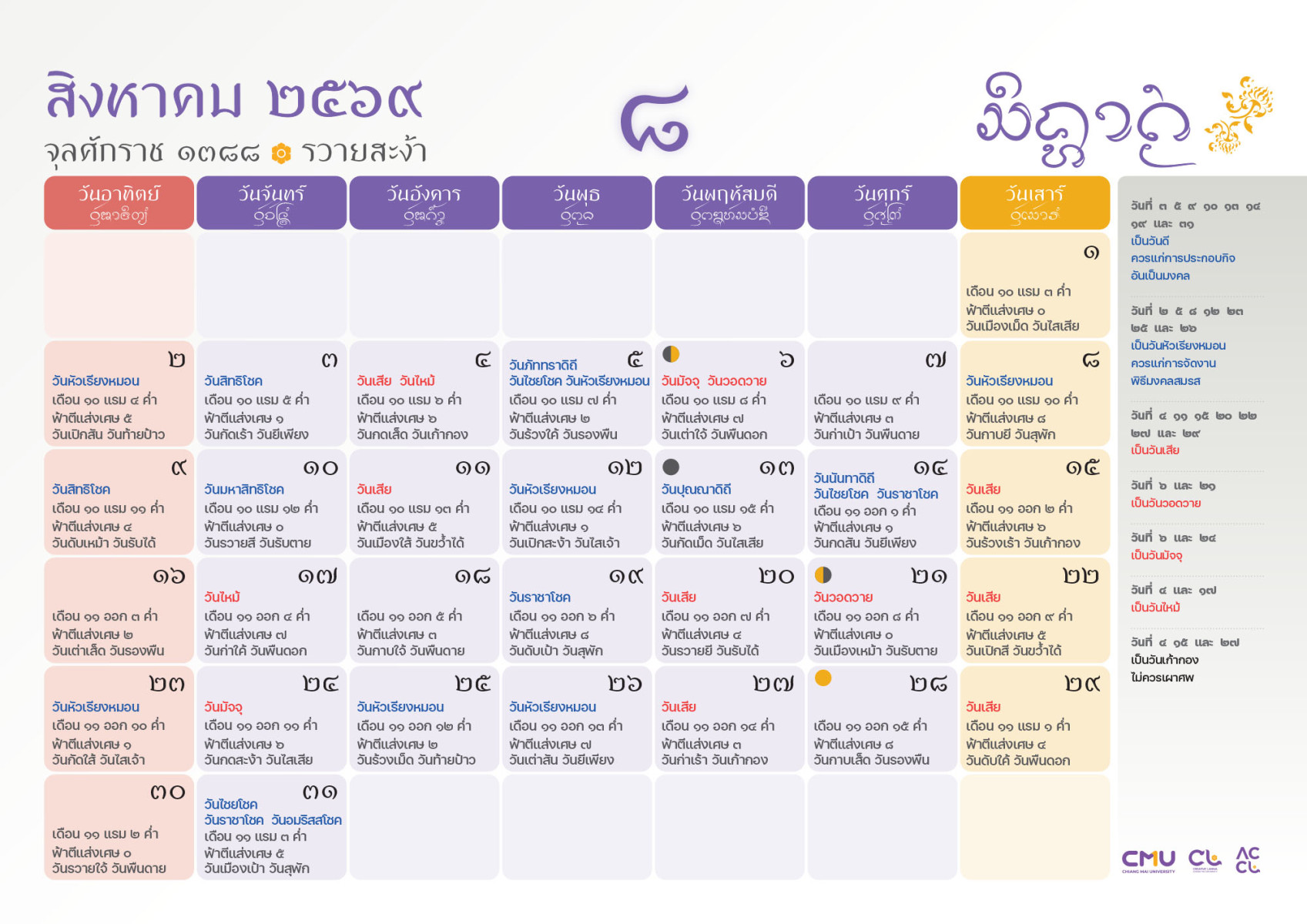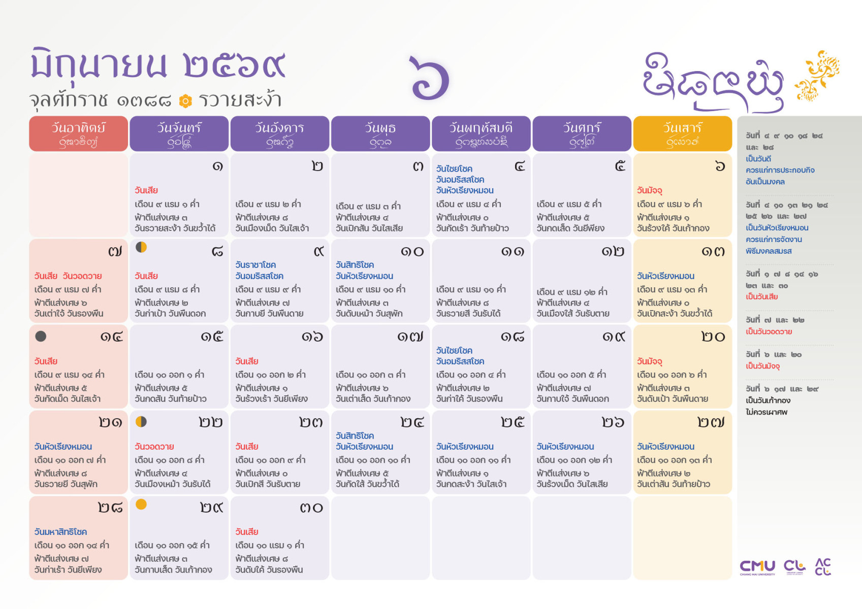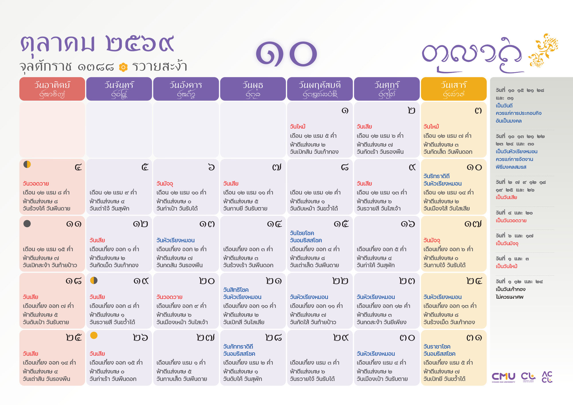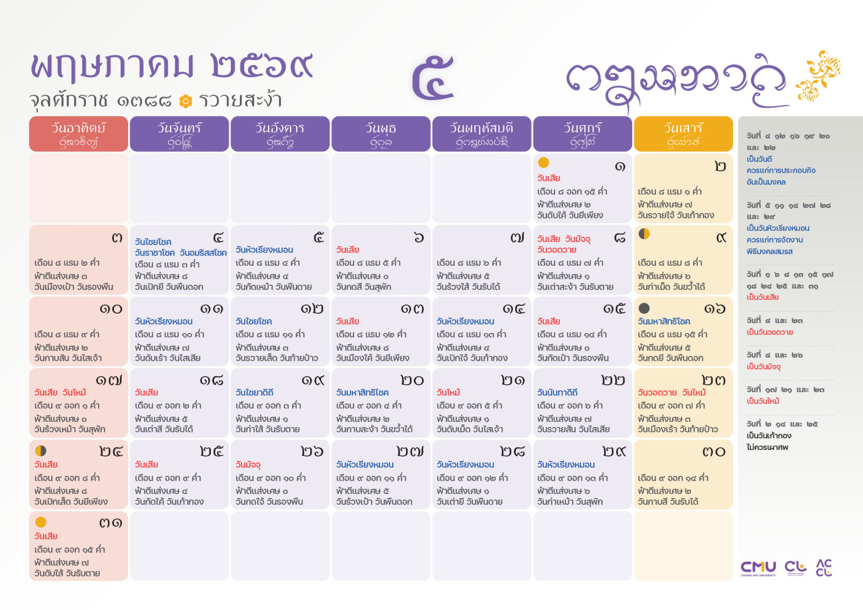 ดาวน์โหลดฉบับเต็มได้ที่: https://accl.cmu.ac.th/Lanna/calendarDownload/2569