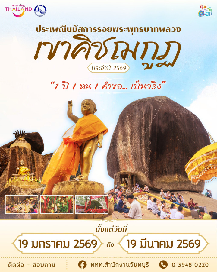 ThailandTravel | 19 Jan - 19 Mar 2026 | สถานที่จัดงาน/Google Map เขาคิชฌกูฏ | 21 | เที่ยวจันทบุรี วัฒนธรรมไทย ประเพณีไทย เขาคิชฌกูฏ พระบาทพลวง รอยพระพุทธบาท Chanthaburi festival Khao Khitchakut pilgrimage Thailand สายบุญ festival Thailand Buddhist trail Thailand culture eastern Thailand spiritual travel Phra Bat Phluang Buddha footprint Thai culture Buddhist pilgrimage Thailand festival sacred mountain temple trail faith journey Thailand tradition Chanthaburi travel