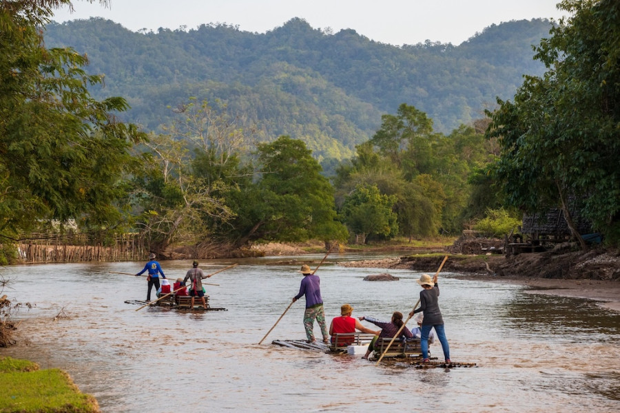🧭 ล่องแพไม้ไผ่ / เดินป่าชมถ้ำ / เที่ยวน้ำตกธรรมชาติ