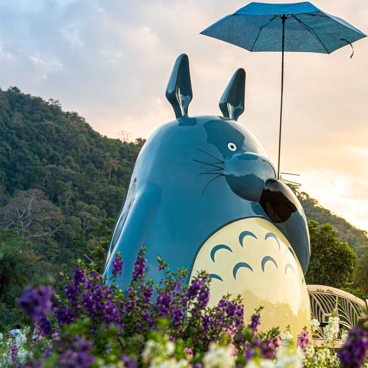 แลนด์มาร์กสุดฮิตที่ทุกคนต้องแวะ! เจ้าโทโทโร่ตัวใหญ่ยืนถือร่มรอให้คุณมาถ่ายรูปคู่ เป็นมุมที่ดูอบอุ่นและน่ารักมาก ๆ