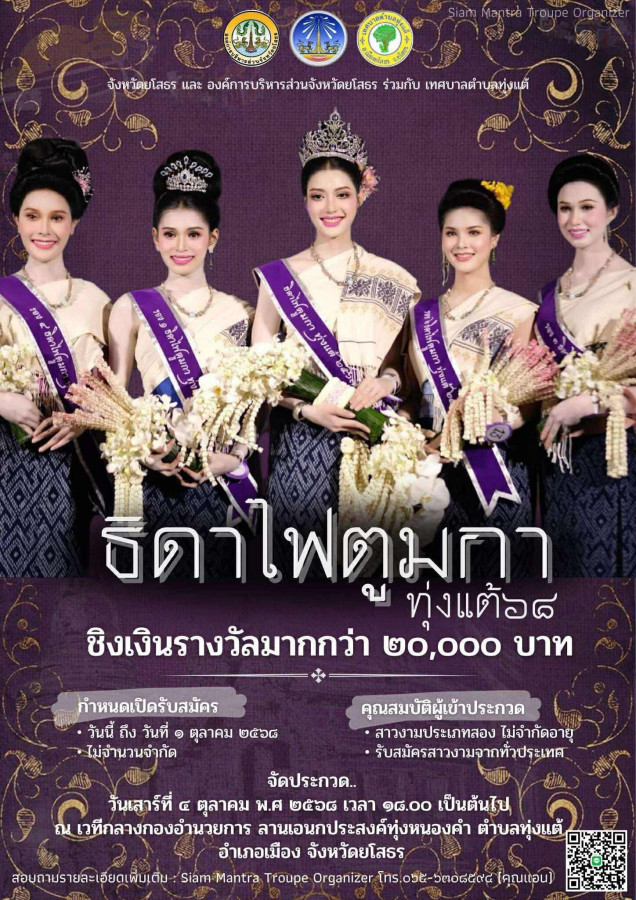 4 ตุลาคม 2568: การประกวด “ธิดาตูมกา” ค้นหาสาวงามประจำปี พร้อมเงินรางวัลกว่า 20,000 บาท