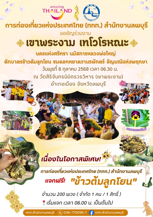 - ผู้จัดงาน/ข้อมูลติดต่อ ททท. สำนักงานลพบุรี 036770096