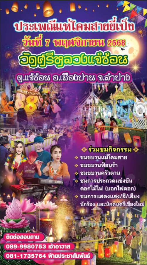 7 พฤศจิกายน 2568 | วัดศรีหลวงแจ้ซ้อน ต.แจ้ซ้อน อ.เมืองปาน จ.ลำปาง